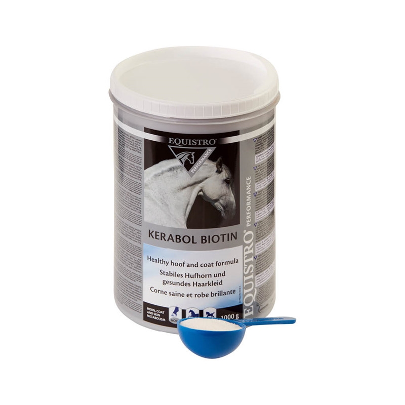 Anvendt dagligt vil Kerabol Biotin hjælpe hovmetabolismen og dermed skabe en sund og elastisk hovvækst, med en god cellebinding, som ikke så let flækker og revner samt en sund og skinnende pels.